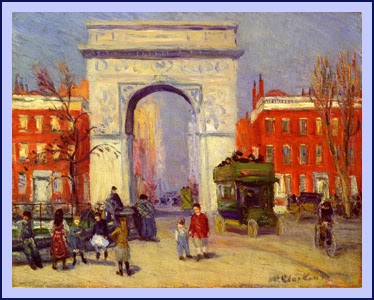 There is a feeling in the park that I can't describe, an old and a new coming together to form that ineffable feeling that is what makes New York so unique and indescribable all at the same time. This painting captures for me that feeling in a way my words will always fail. Looking at this gorgeous painting Wharton's house would be that building on the right of the arc. She was there. She was in the center of it all. She is, in my mind, what true Literary New York is and always will be.