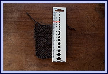 Ok, final try, fingers crossed. 11 and... yes! Finally, it's right on 4" as you can see, and as for what you can't see because of the ruler, a stitch I dropped, hey, it's only a test after all. Whew, was worried there. I've never worked with needles as bulking as 11s, so this should be interesting.