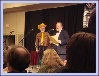 At one point they sang a bit of a They Might be Giants song and at another point, while recounting meeting a crazy person who wanted to buy the rights to the book demonstrated their "escape plan." They where to employ the code word "Biggles." But this lady was so beyond Biggles levels they both started to pretend to fly, in a move the fictional pilot would heartily approve. When Neil, near the end of the wondrous hour, got up and stood at the podium near me, he realized just how big the room was. Literally everyone from the convention came... well, they kept telling us not to miss it? And have I said... rumors? Here was Neil going, "Wow, there's people over here." It was nice to finally see his face and not just his dulcet tones. The podium had a purpose, of which Terry was suspicious. Turns out Neil was there to present the 2010 Andre Norton Award for Young Adult Science Fiction and Fantasy to Terry for I Shall Wear Midnight, a serious contender for my favorite Terry Pratchett book ever. Terry was very humble with his short speech: "About Bloody Time." I don't know if any author event or panel could ever live up to this. Since then Terry is sadly gone and Neil doesn't do as many events. But at least I can say I was there. Also, it wasn't the only time I was destined to see Neil.